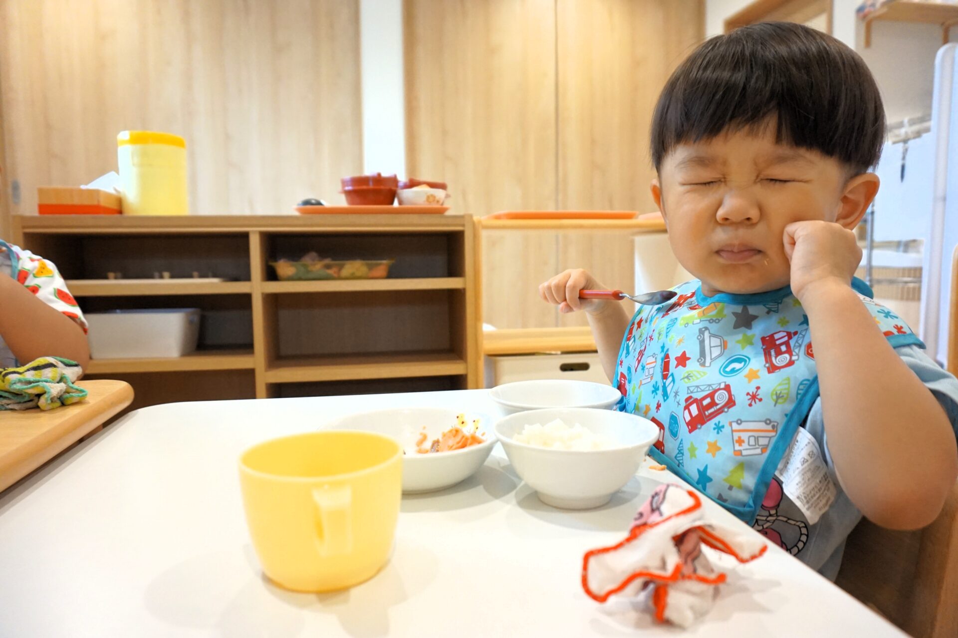 給食が配られたらまず、鮭に手を伸ばす園児が多く、「美味しい💕」と言いながらスプーンが止まりません。