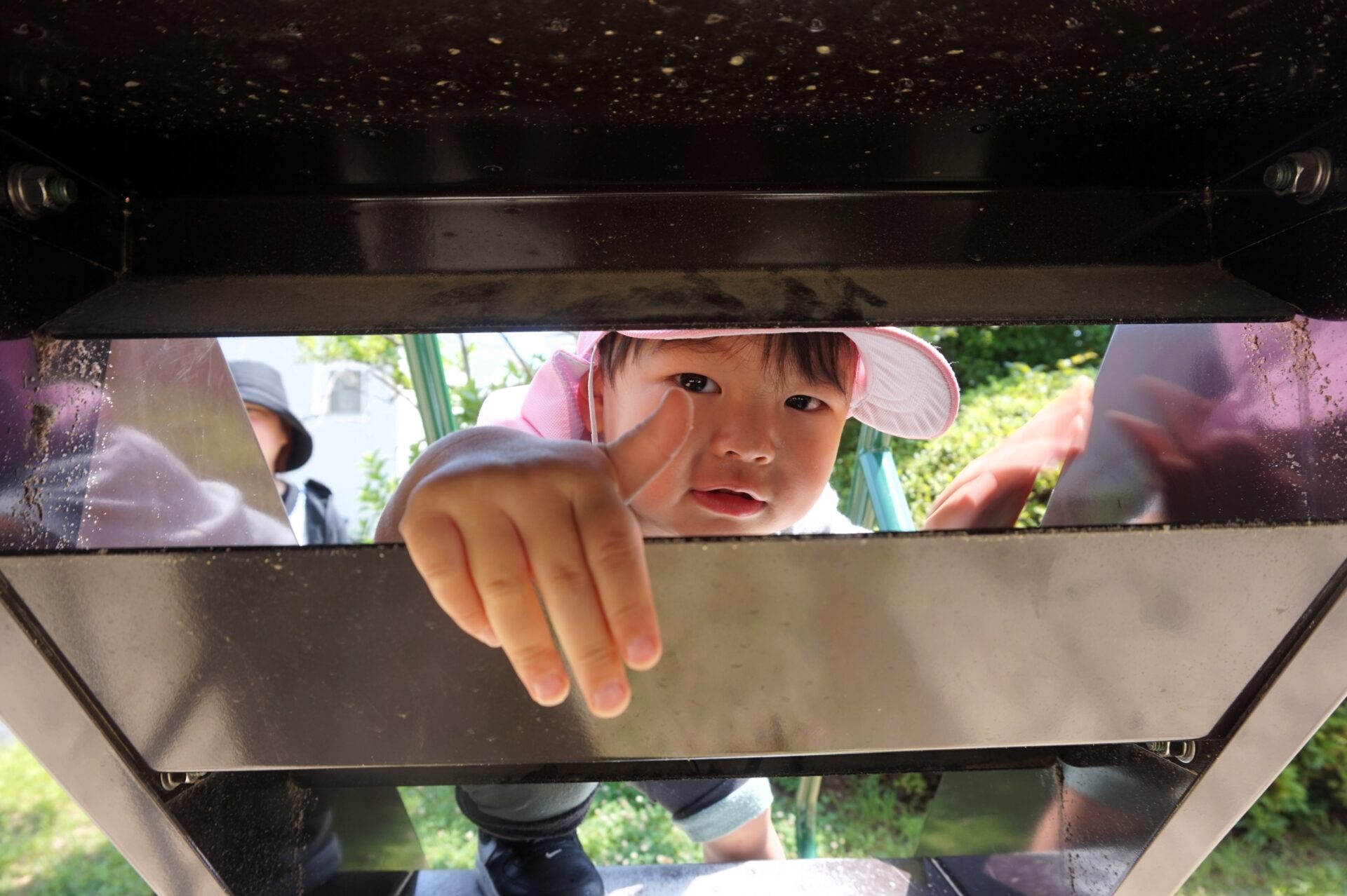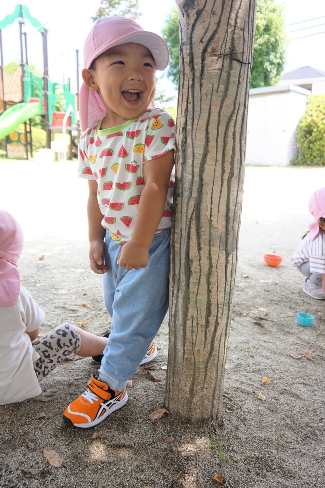 木の陰にうまく身体を隠していたお友達や、滑り台の階段の上で姿勢を低くして隠れていたお友達も。