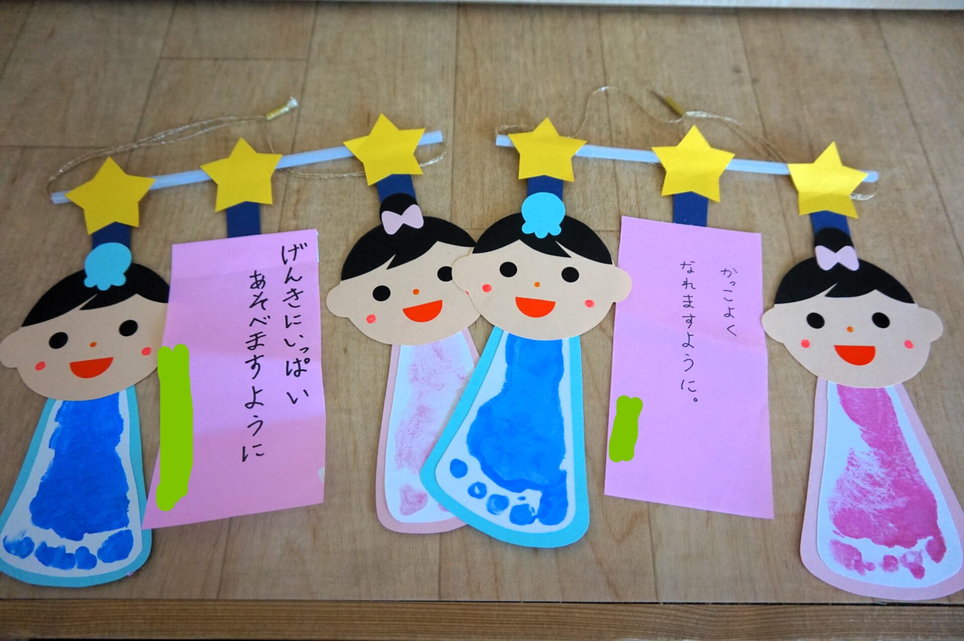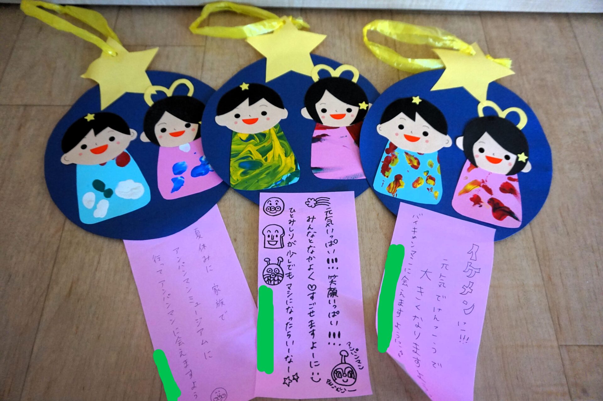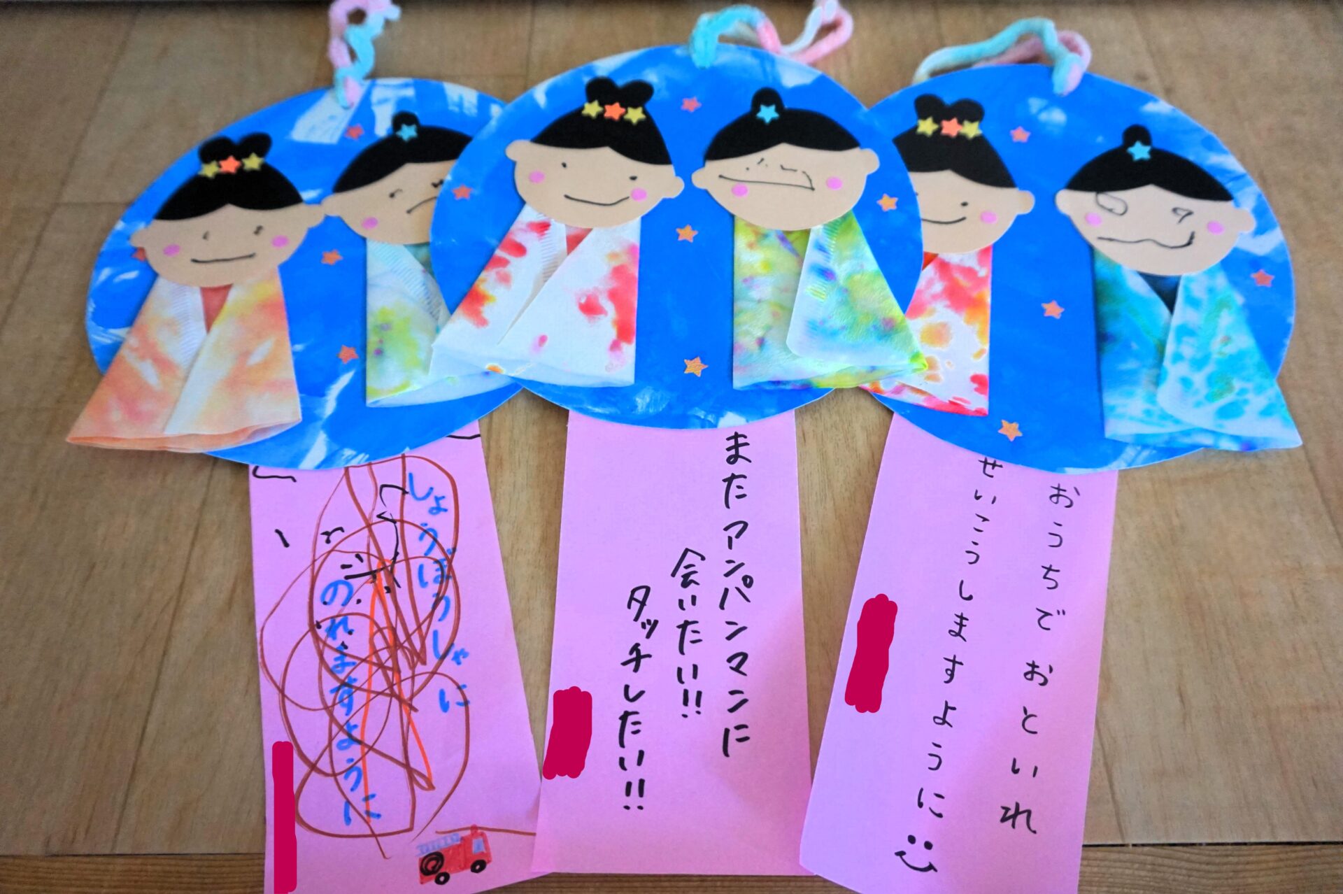 製作の下には、みんなのお願い事が…。お願い事が叶いますように…。