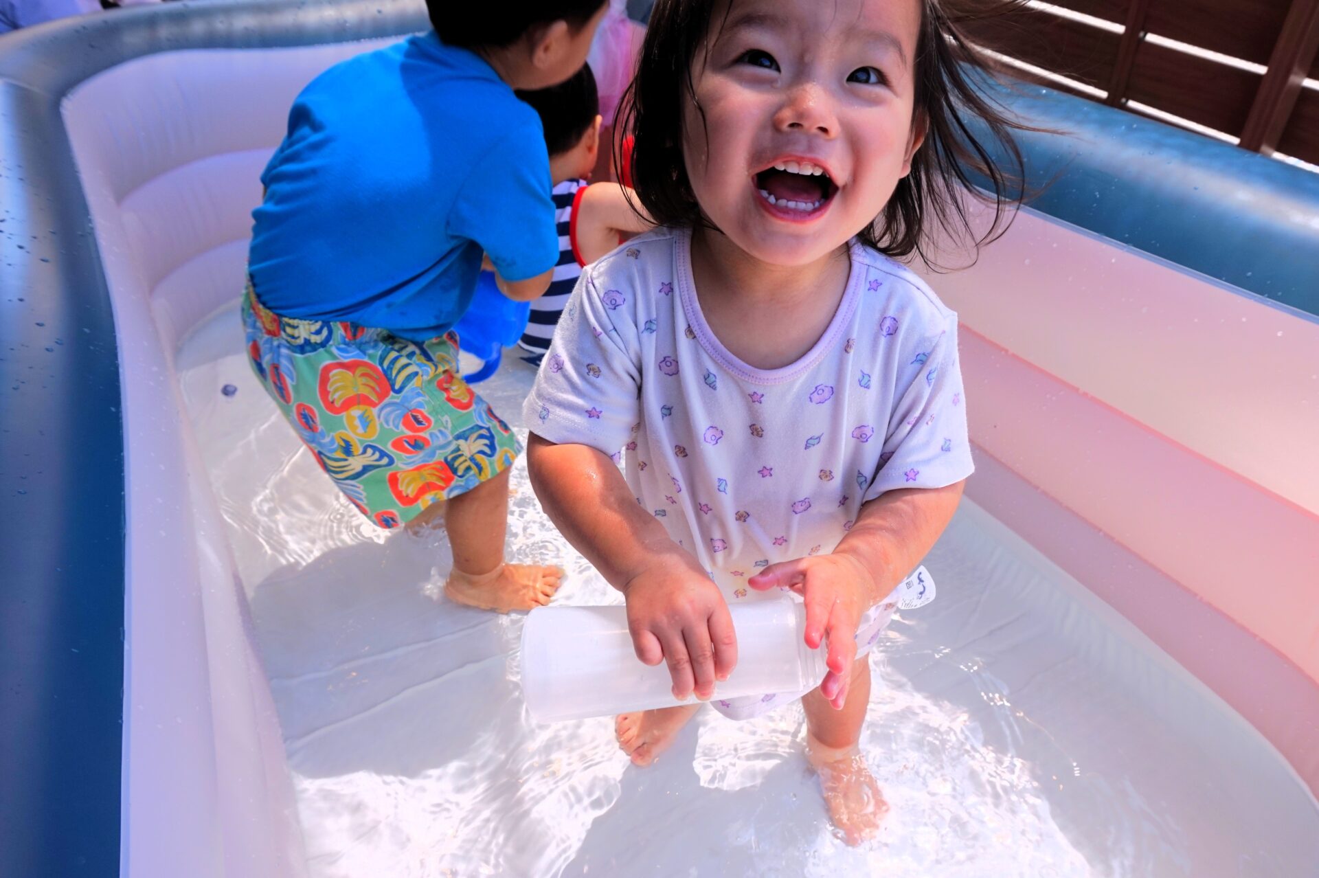 また、プールで水をバシャバシャしてはしゃいでいる子ども達も。水しぶきが上がるたびに笑顔がこぼれていました😆