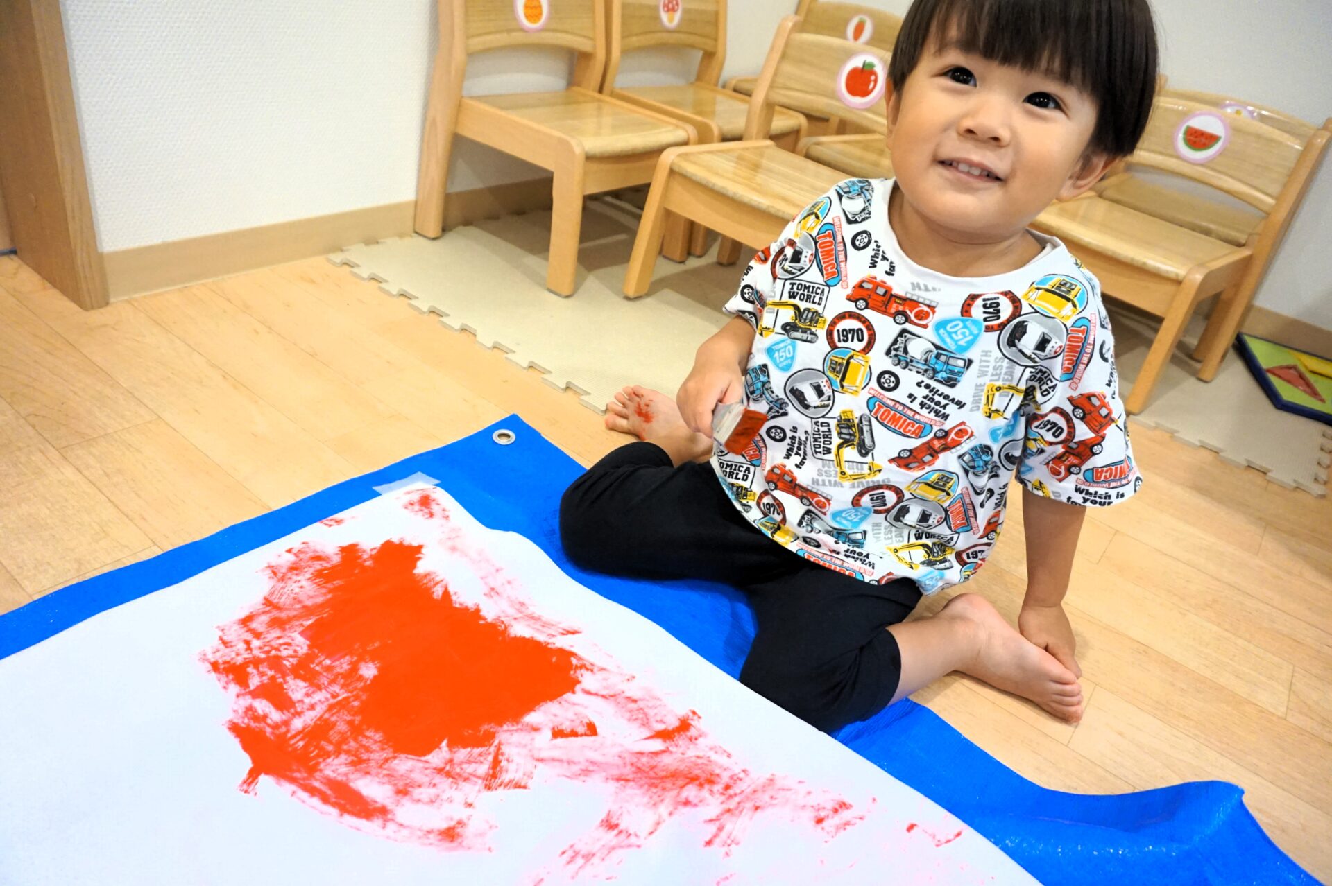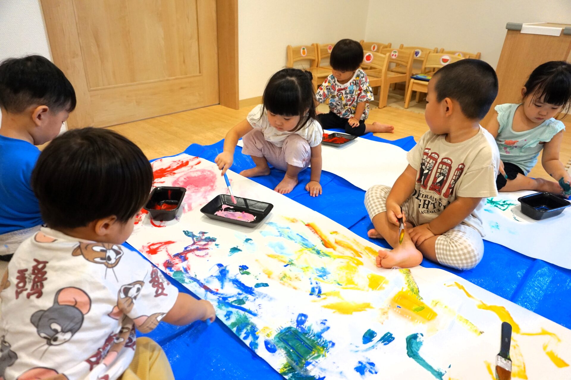 目の前の大きな画用紙に園児たちは大興奮✨