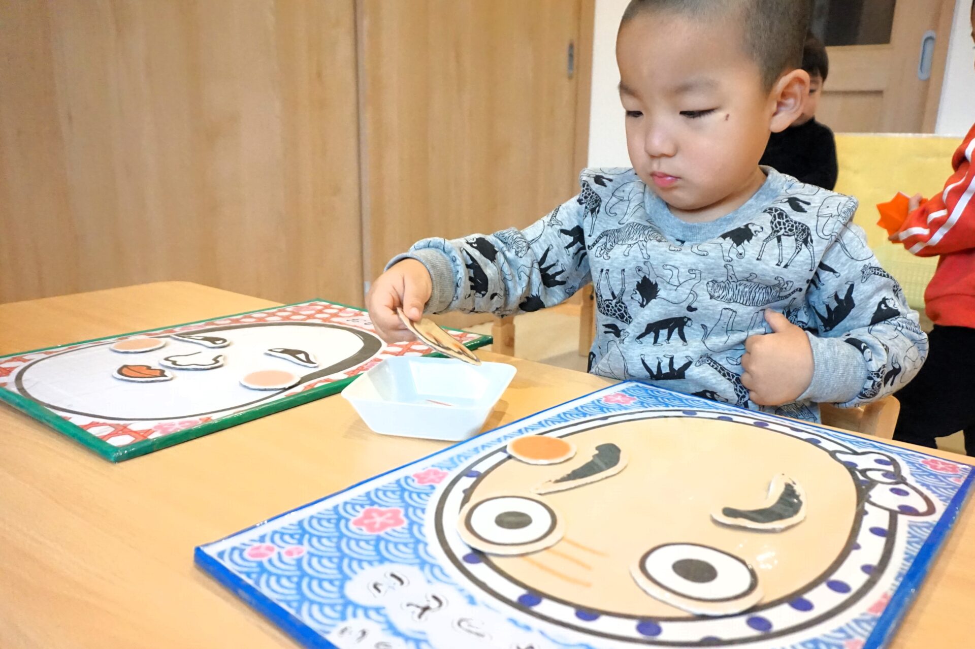 福笑いは、綺麗な顔や逆さの顔、面白い顔といった園児達の個性があふれる仕上がりになりました😊