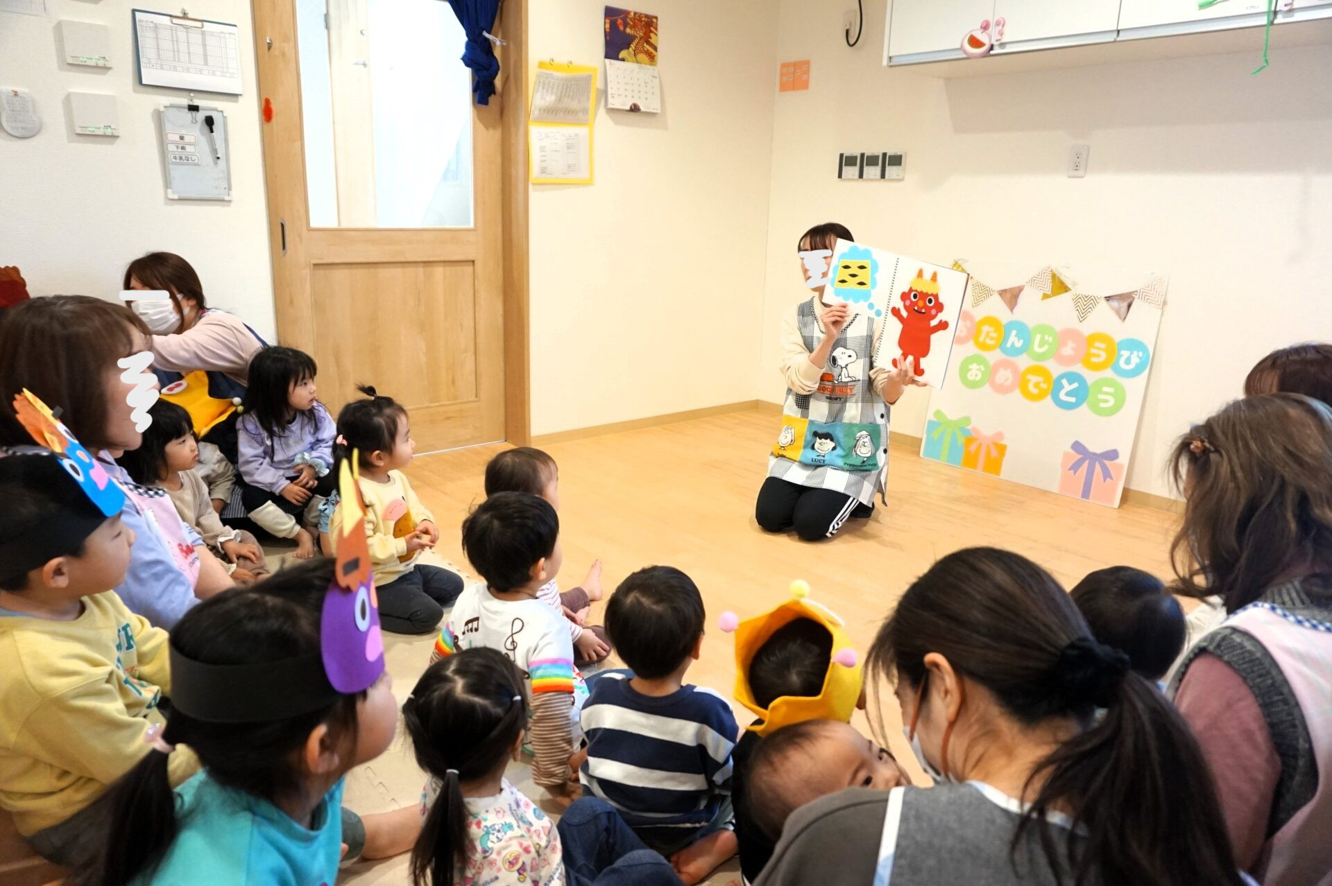 保育士からのもう一つのプレゼント、紙芝居もみんな興味津々で集中して聞いていました😊
