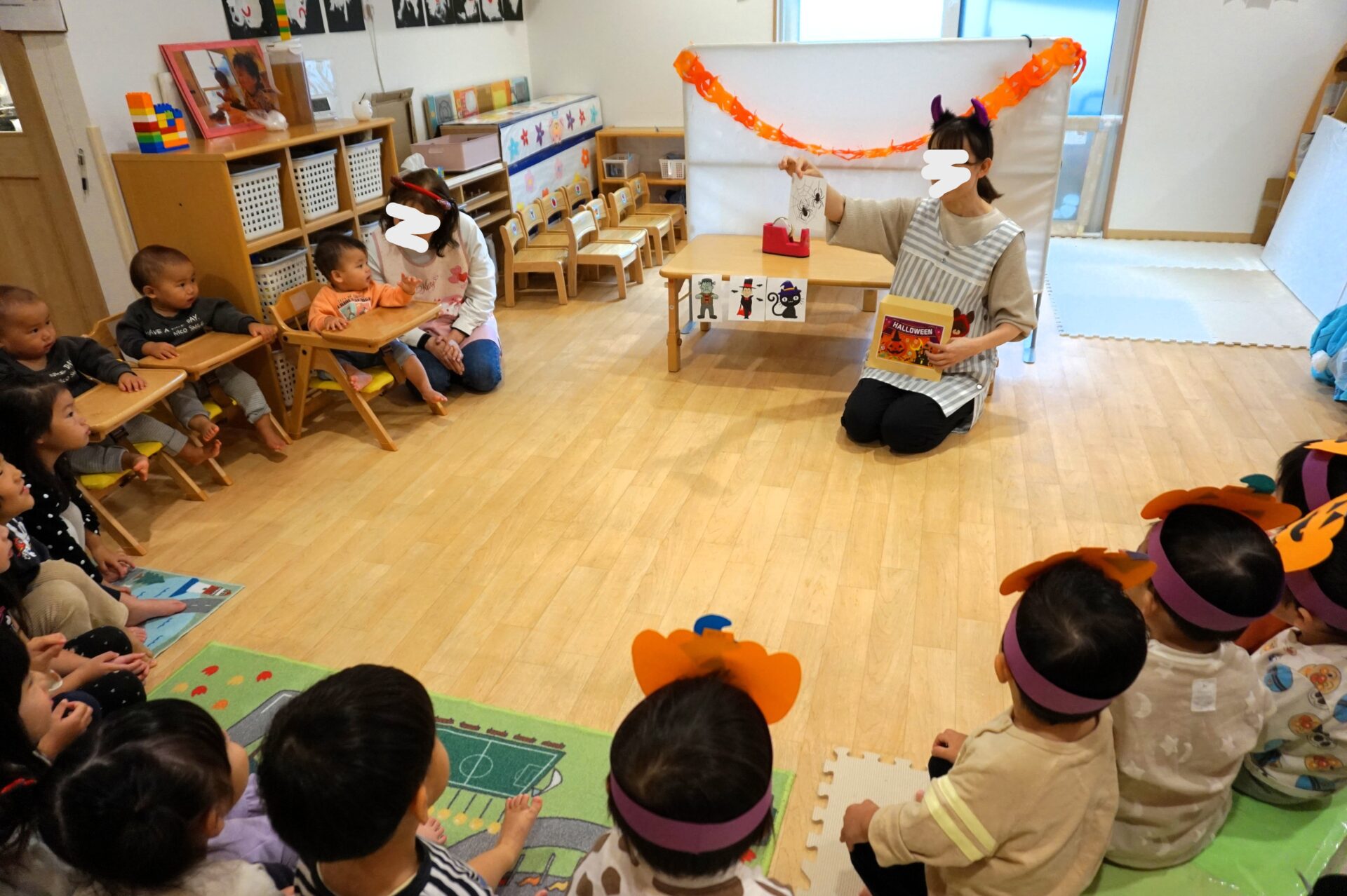 みんなで、お化けさんの名前を当てたり、一緒に手遊びやお歌を歌ったりして遊びました😊