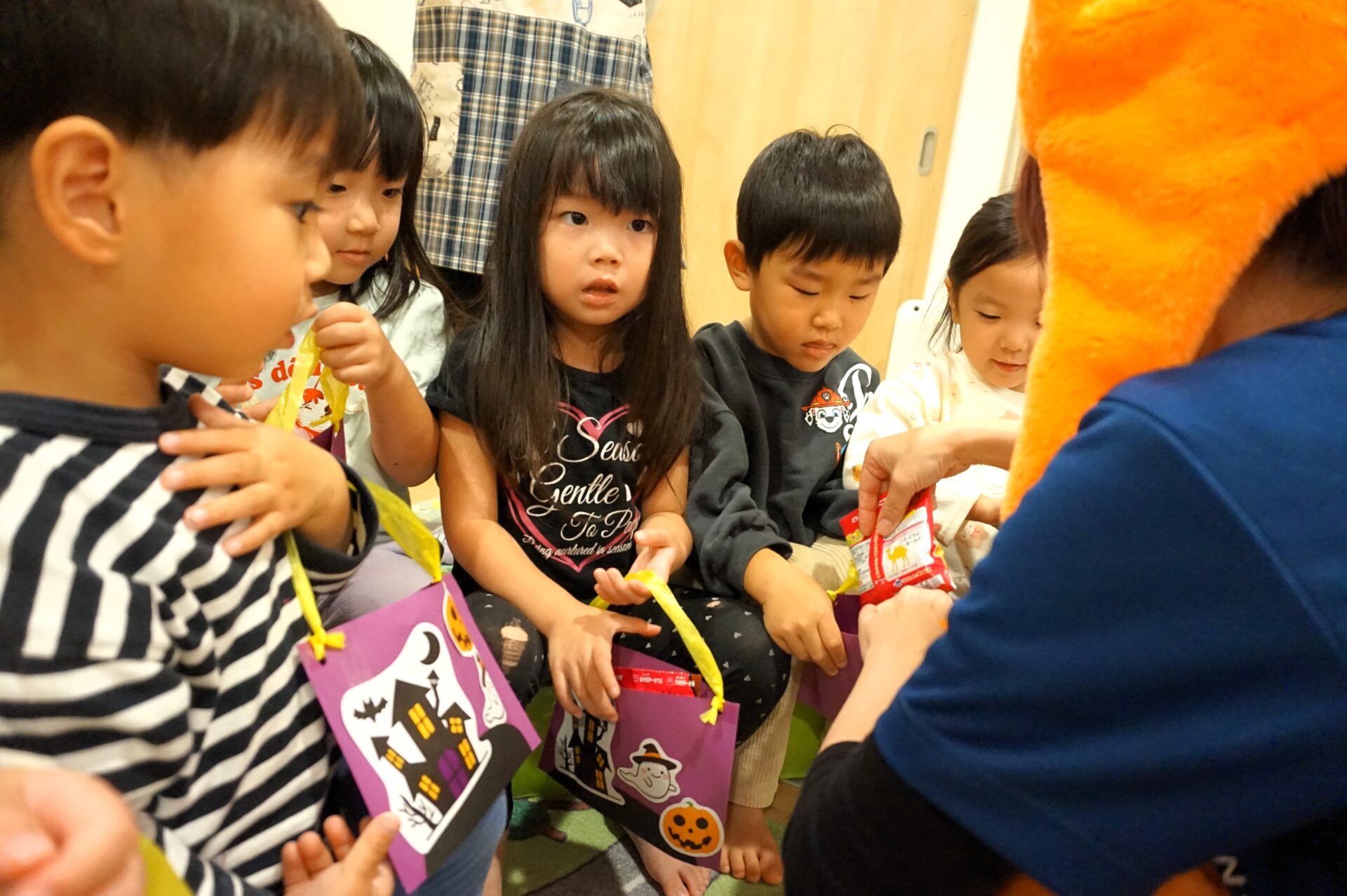 そして、ハロウィンと言えば欠かせいのがお菓子です🍬🍭園長先生がみんなのためにお菓子を持ってきてくれました!!