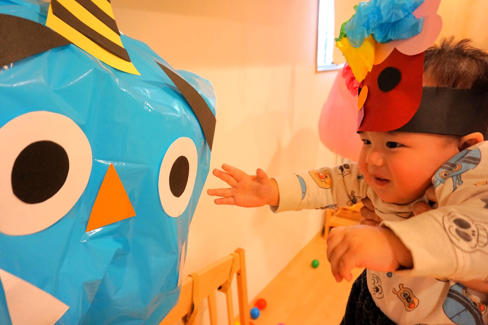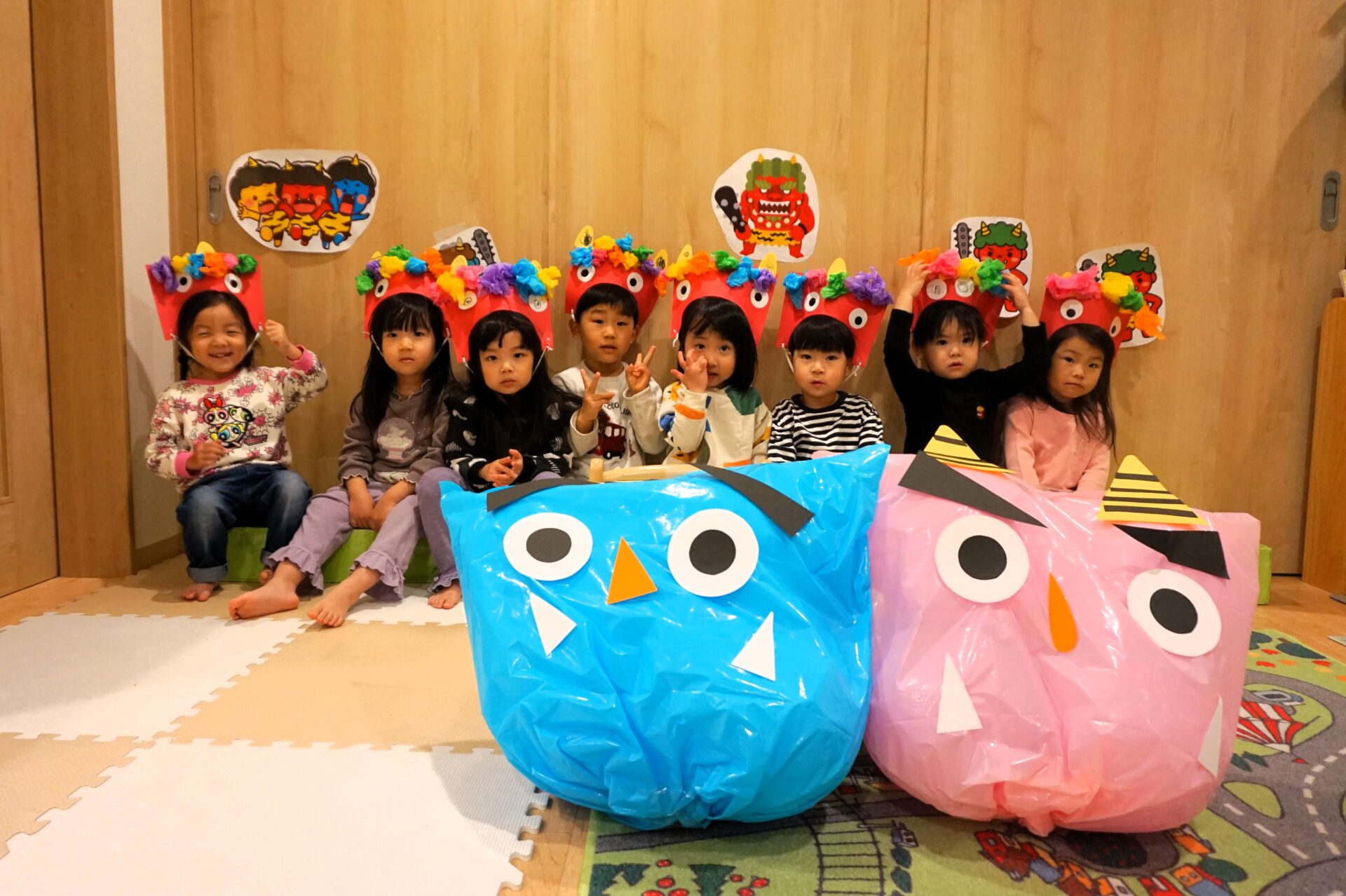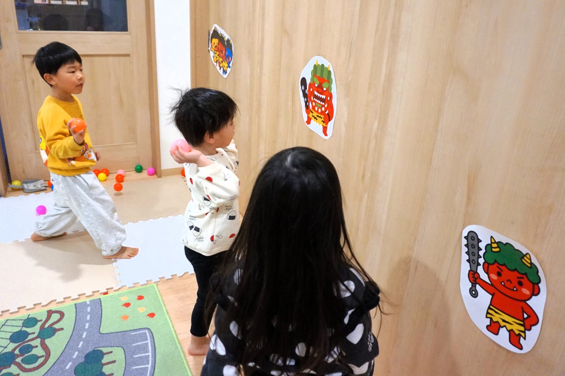 「保育園に鬼が来たよ~!豆を投げてやっつけよう!!」