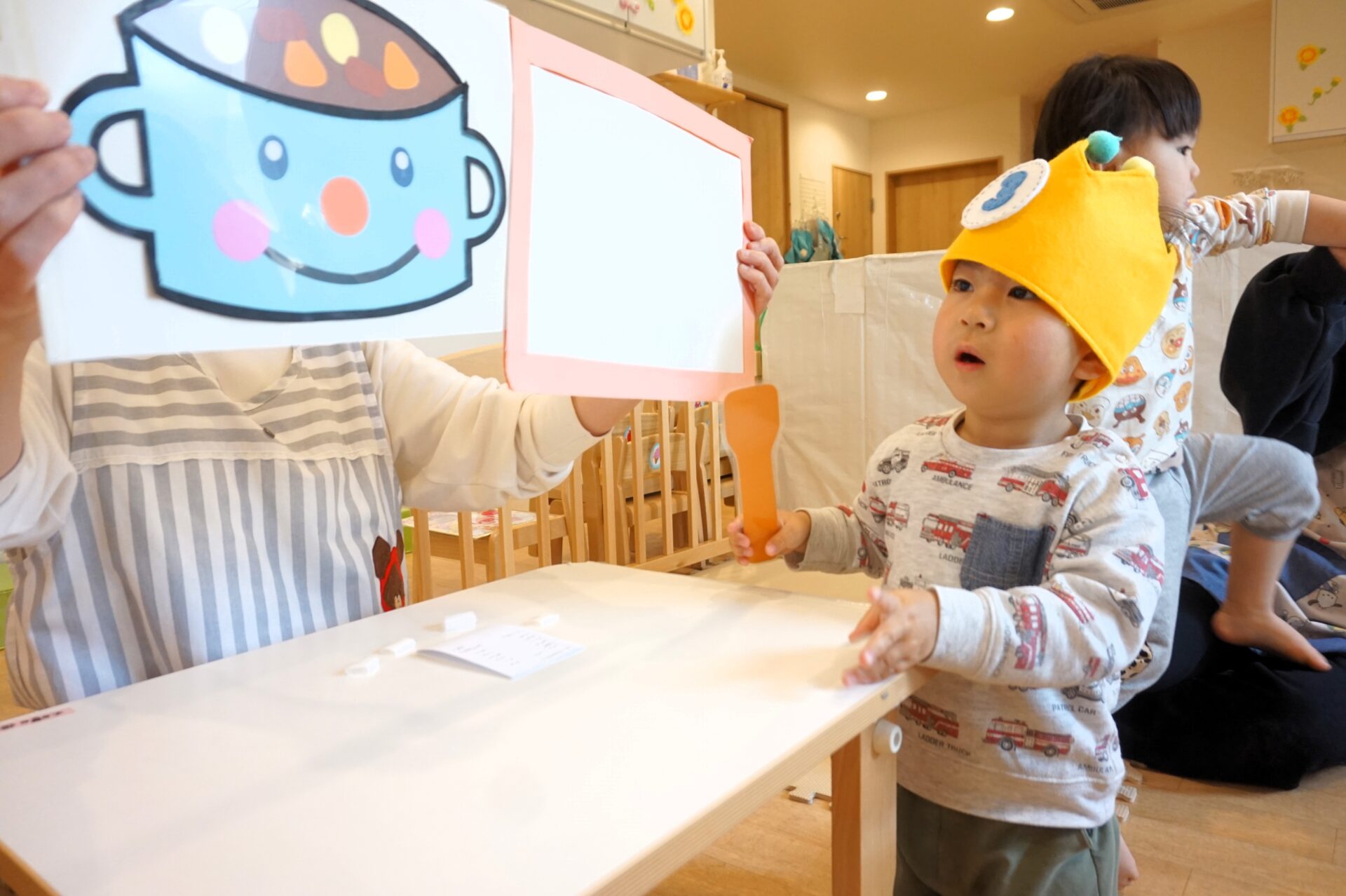 お誕生日会が始まり、先生やお友だちからの歌のプレゼントや、楽しい出し物の企画などで大盛り上がり(^^♪大好きなカレー作りの歌では、